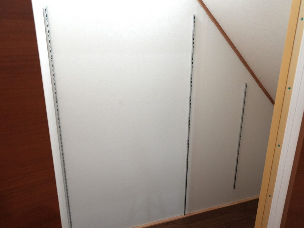 - 壁に固定することで、階段下収納の奥までしっかり使える