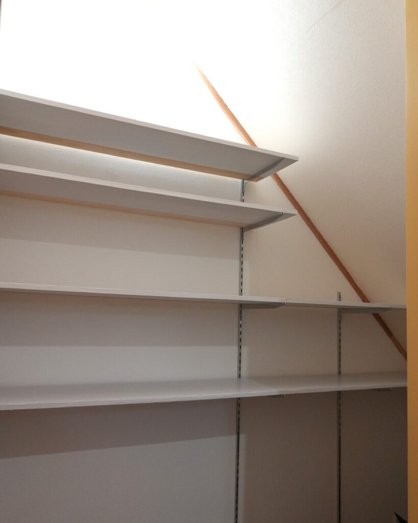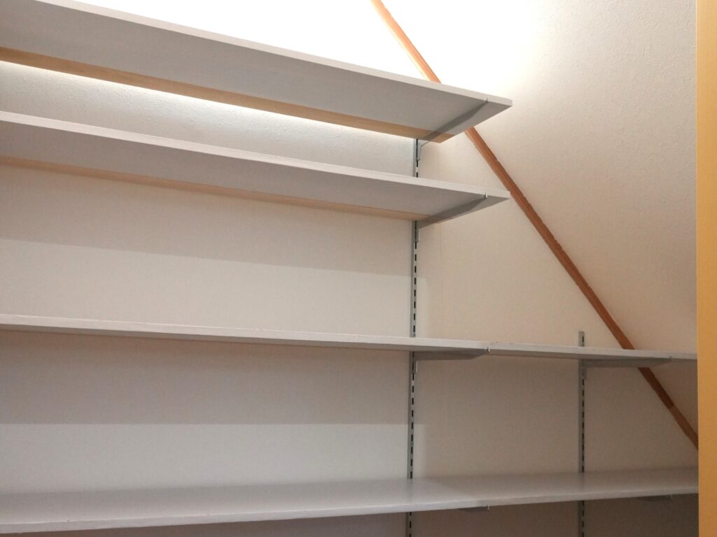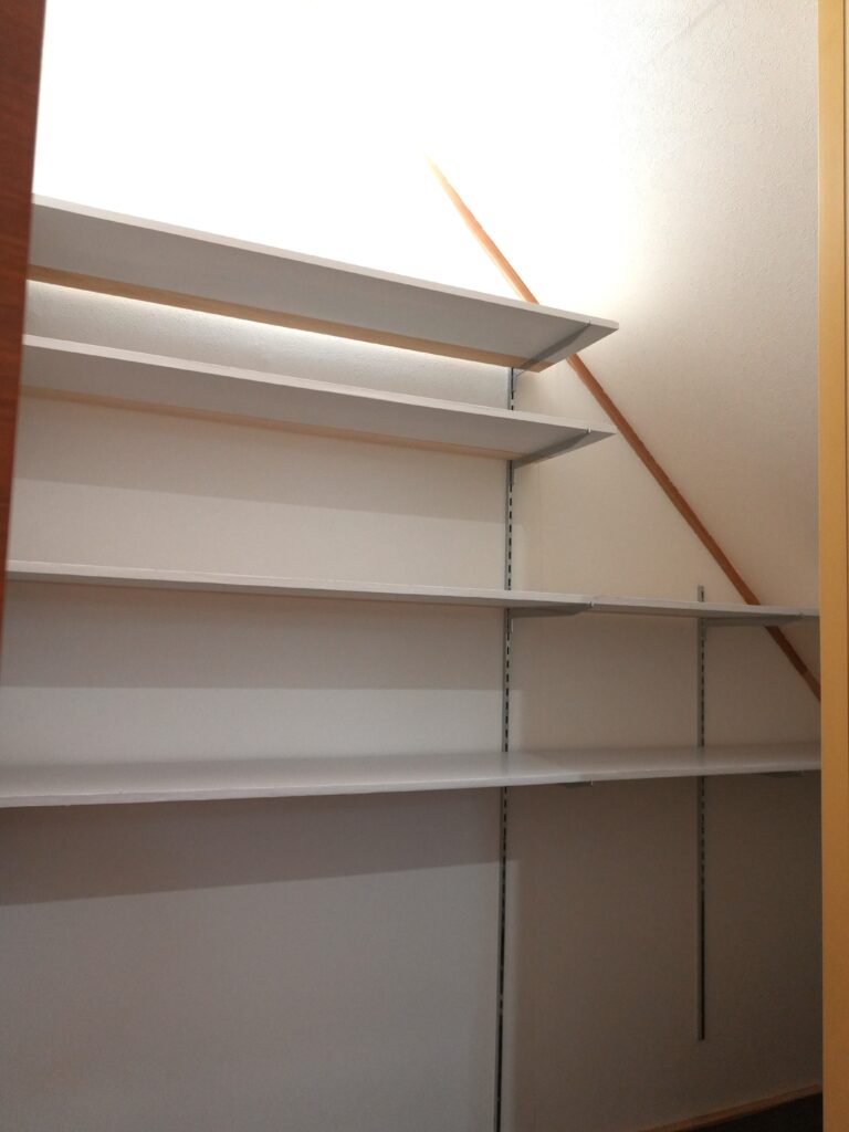 そこで選んだのが、自在棚(棚柱と棚受けを使った収納)です。