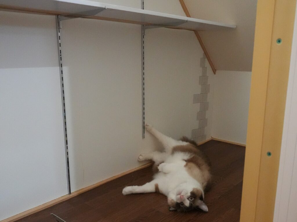 棚受けと棚板を設置する